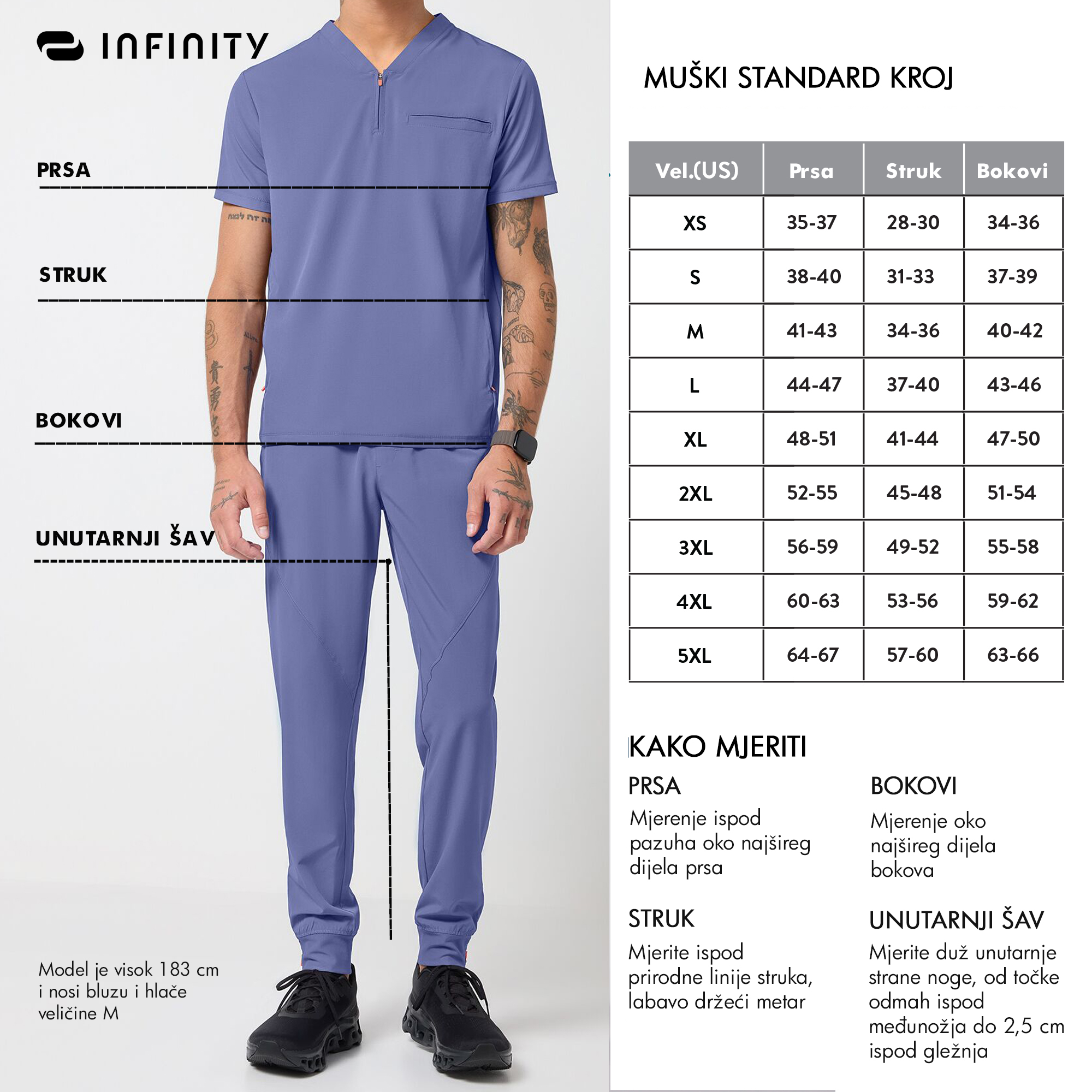 Infinity donosi novu razinu medicinskih uniformi za profesionalce koji od svoje radne odjeće traže više. Spoj inovativne tehnologije izvedbe i praktičnosti potrebne u zdravstvenom okruženju. Udobnost koju osjetite, stil koji nadilazi radni dan. Ne oklijevajte — odaberite savršeno krojene hlače i bluzu usklađenog dizajna. Elastična tkanina i suptilni sportski detalji stvaraju sklad između elegancije, udobnosti i pokretljivosti.